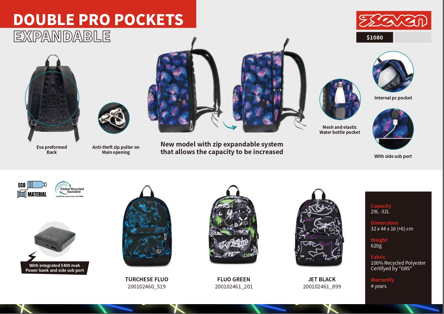 SEVEN student backpacks are known for their functional features, including multiple compartments, padded laptop sleeve and ergonomic back panel.